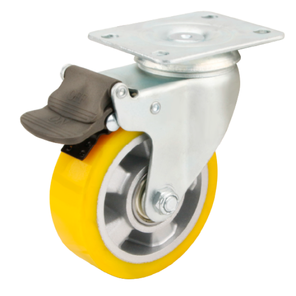 C322-UA-HD: Bộ bánh xe tải trọng nhẹ kiểu Mỹ (khóa nhựa) - Bánh xe PU Pullprene® lõi nhôm Herdar