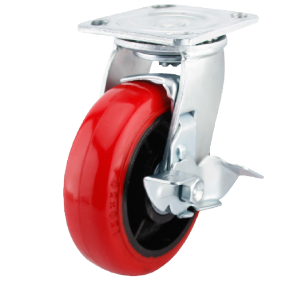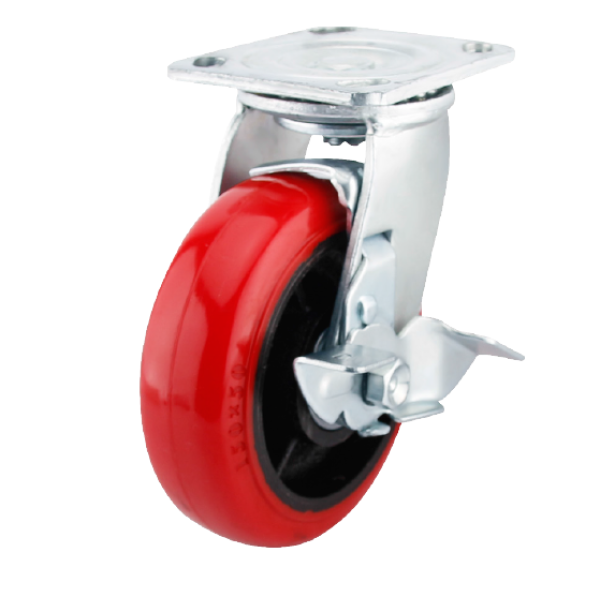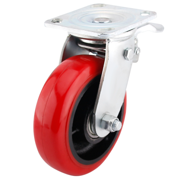 C512-KU - Bộ bánh xe tải trung kiểu Hàn Quốc – Bánh xe PU Pullprene® bề mặt cong, lốp dày, lõi gang