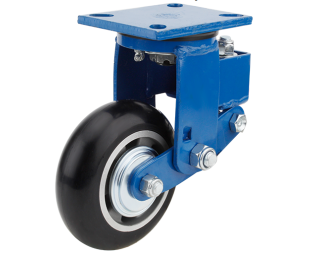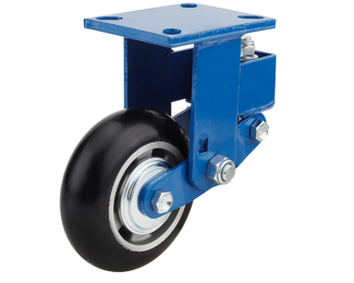 C721 - HUA-RT - Heavy-duty shock-absorbing wheels with blue frame and Herdar Trackprene® thick-film polyurethane spherical aluminum core.