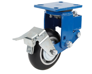 C721-KU - Bộ bánh xe tải nặng giảm chấn (càng xanh) – Bánh xe PU Trackprene® lốp dày mặt cong, lõi gang Herdar